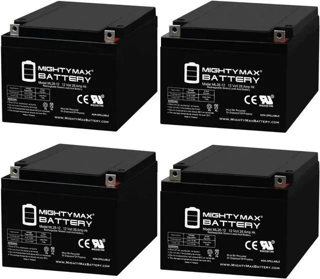 ML26-12 SLA is a 12V 26AH Sealed Lead Acid (SLA) rechargeable maintenance free battery, Pack of 4 - UL Certified