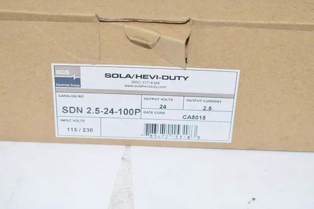 Sola/Hevi-Duty SDN2.5-24-100P DC Power Supply, 24 VDC, 2.5 Amp, 47-63 Hz