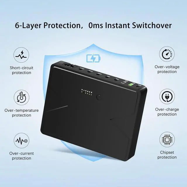 3.0 +Type-c: PD65W)65W, If so, all output ports will close and the UPS will shut down automatically. Please remove excess loads. Note 4The UPS will be shut down automatically once the battery power is too low, You can restart once connected to the AC power.