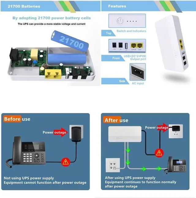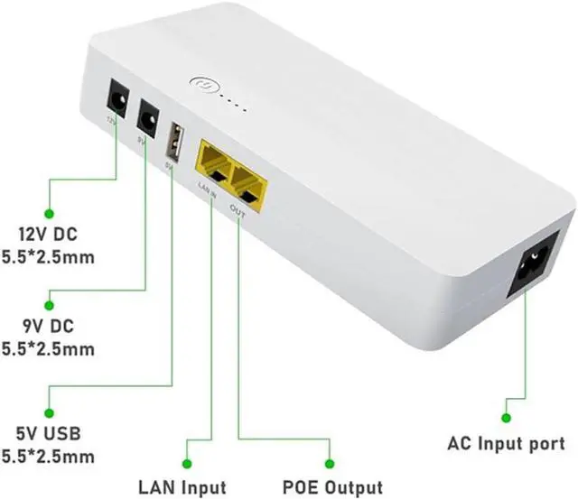 POE interface can be connected to various gateway devices, keep the electricity and internet Small uninterruptible power supply for power outage, compatible with router, modem, security camera, smartphone, fax machine, fingerprint recorder, DSL, ect, and can still use the network in case of power outage
