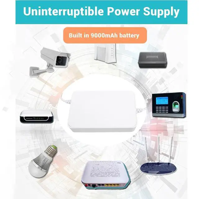 [Emergency Power Supply] Keep your essential devices running during power outages with this compact and reliable uninterruptible power supply. featuring a high capacity 9000mah built in battery, it provides dependable backup power to ensure uninterrupted operation for your devices. for maintaining connectivity and security during unexpected blackouts.