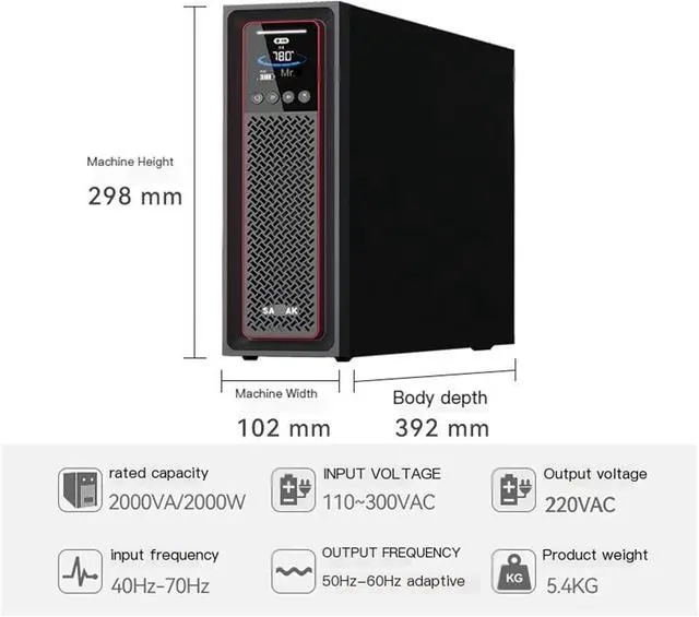 C2KS UPS Uninterruptible Power Supply 2KAV/2000W Emergency Power Supply Requires External Battery