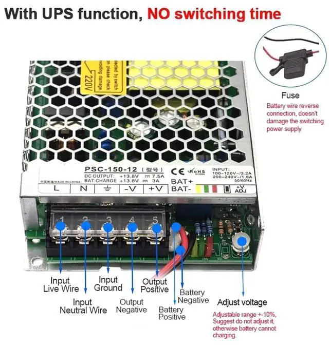 150W UPS Uninterruptible Switching Power Supply Battery Charging Terminal Transformer Driver Adapter with Fuse PSC-150-12 PSC-150-24 with High Heat Dissipation(24V)
