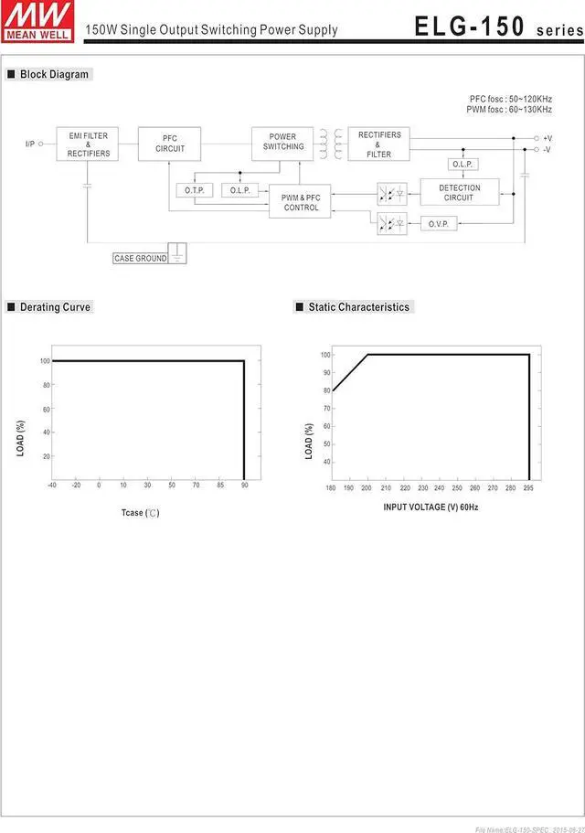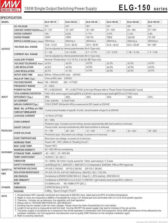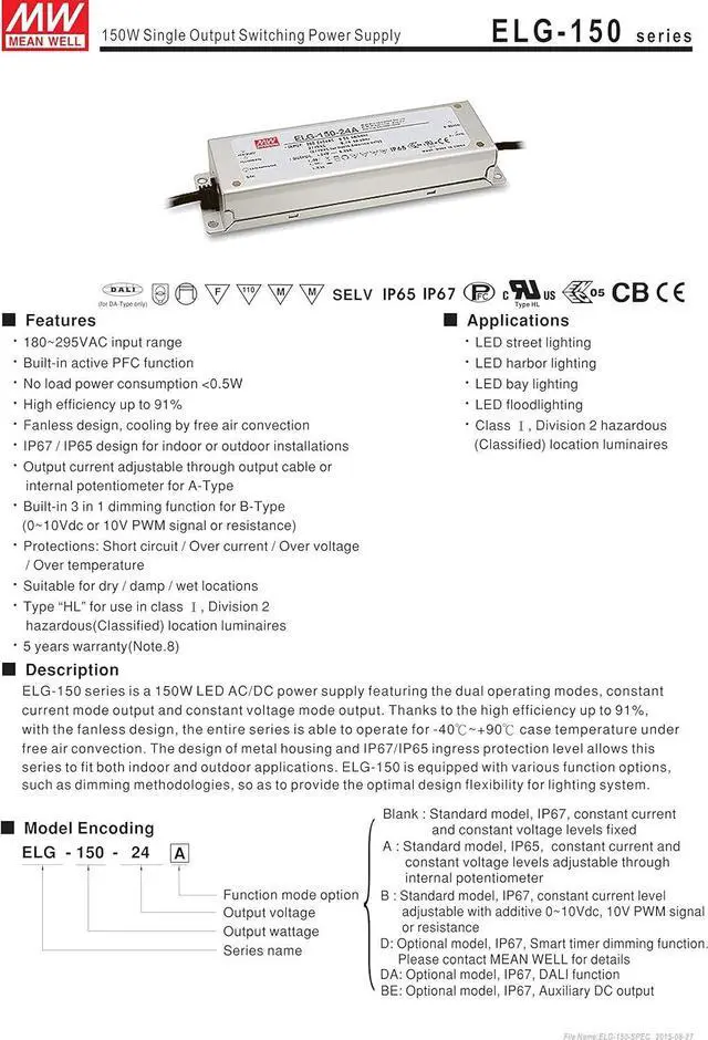 Slim Low profile (31mm) Withstand 300VAC surge input for 5 seconds 150% peak load capability(100ms)-30~+70 working temperature Protections: Short circuit / Overload / Over voltage / Over temperature 3 years warranty