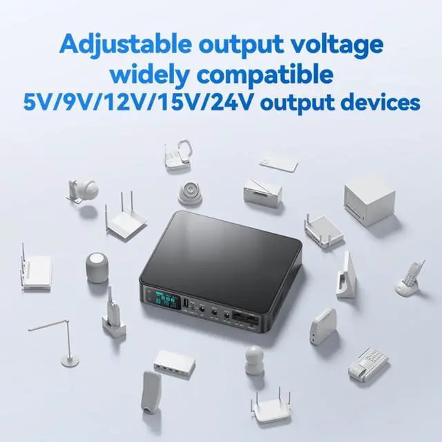 This uninterruptible power supply is safe, with multiple outputs (5V3.60A, 9V2A, 12V2A, POE15V1.3A 24V0.8A) and USB+Type C port, ensuring stable power supply for various electronic devices from routers to smartphones
