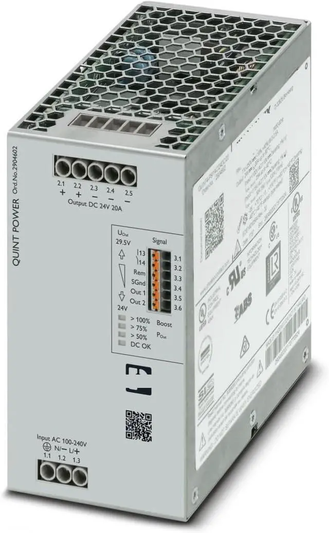 Power Supply Unit, QUINT4-PS/1AC/24DC/20-2904602, Input: 1-Phase, Output: 24 V DC/20 A