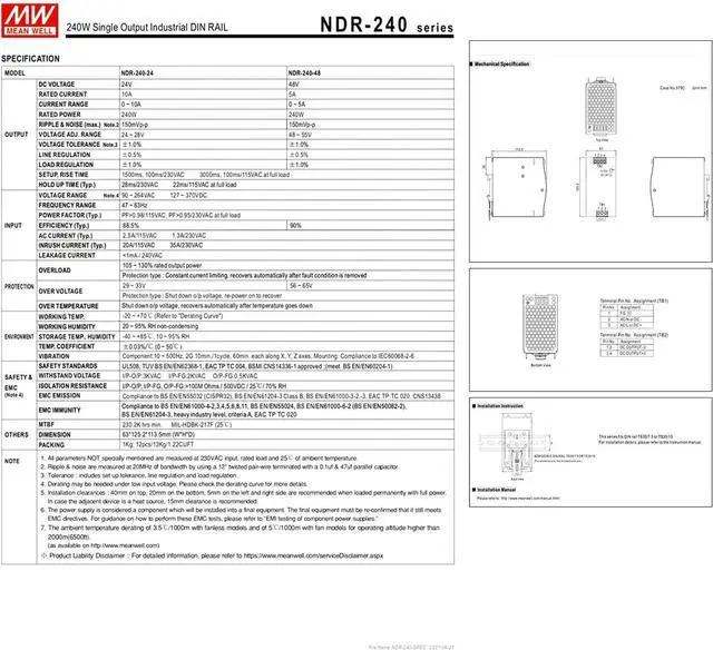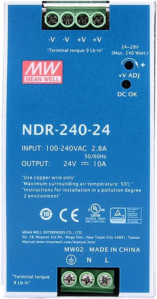 The DrapeMania NDR-240-24 is a 240W, 24V, 10A single-output industrial DIN rail power supply designed for the demanding requirements of modern data centers and server equipment. In today's data-driven world, ensuring the continuous operation of your critical infrastructure is paramount. Power failures can lead to significant data loss, service interruptions, and financial setbacks. The NDR-240-24 addresses these concerns by providing a highly reliable and efficient power solution for your mission-critical applications. With the NDR-240-24's robust protection features and stable output, your equipment remains powered and protected, ensuring uninterrupted service and preventing costly downtime.