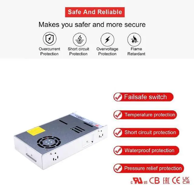 Safety and Compliance for Peace of Mind: Fully compliant with UL/IEC/EN62368-1 safety standards, this power supply meets international regulations, ensuring safe and reliable operation in industrial automation and critical infrastructure.