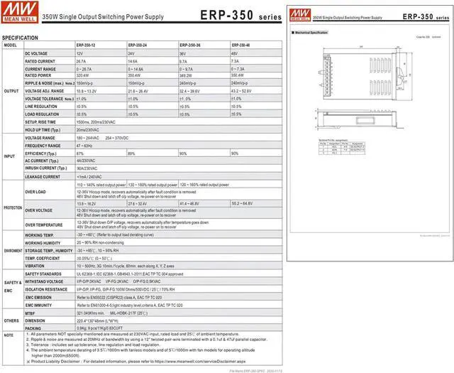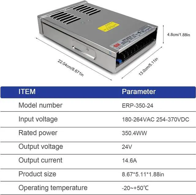 High Output Power and Voltage: This power supply delivers a reliable 24VDC output with a maximum current of 14.6A, providing up to 350.4W of power.