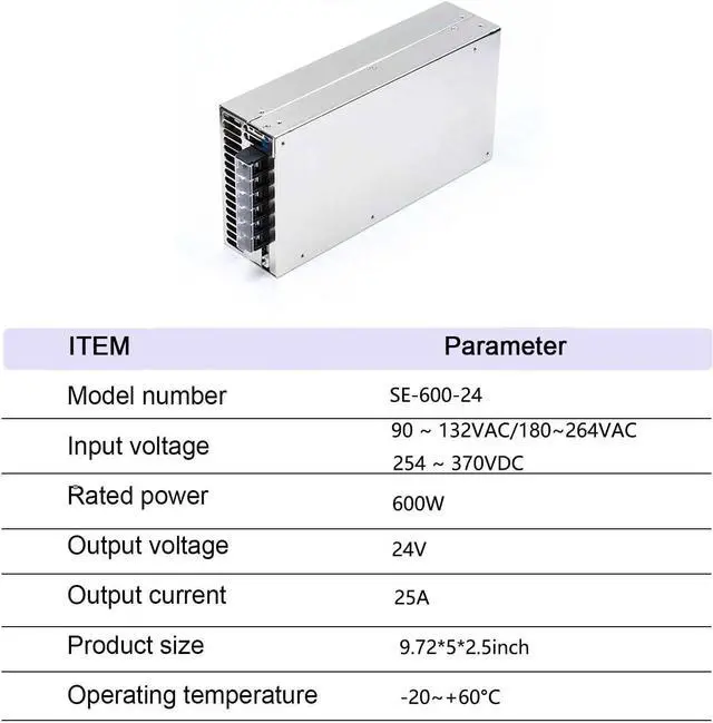 Affordable Automation Power: The SE-600-24 delivers 24V/25A output at 600W, providing a cost-effective power solution for automation systems with moderate power requirements. Note: May not be suitable for high-vibration or other harsh environments.
