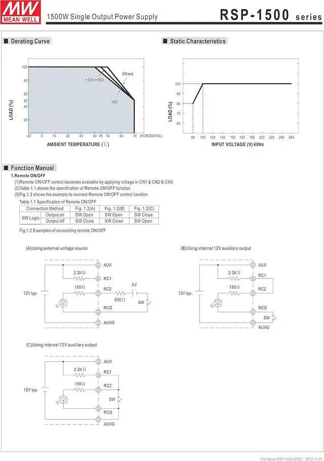 Built-in 5V/0.5A auxiliary power Built-in active PFC function, PF>0.95 Forced air cooling by built-in DC fan Built-in remote sense function Active current sharing up to 4000W(3+1) (Note.8)