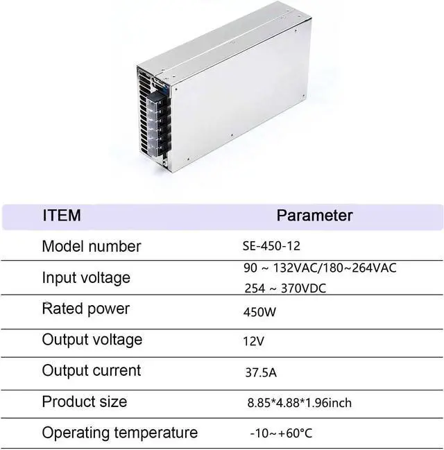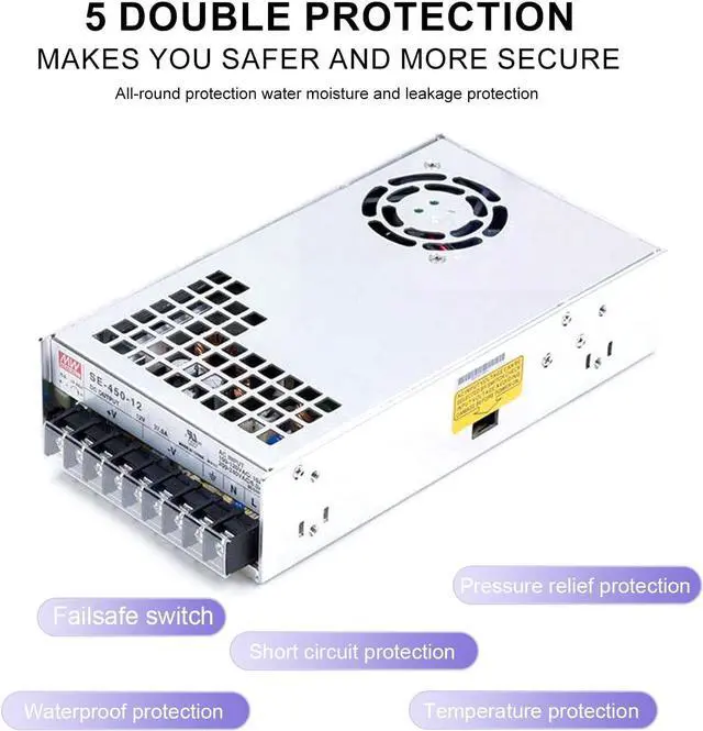Affordable 12V for Automation: This 450W power supply provides a stable 12V output at 37.5A, making it a cost-effective solution for automation systems with moderate power requirements.