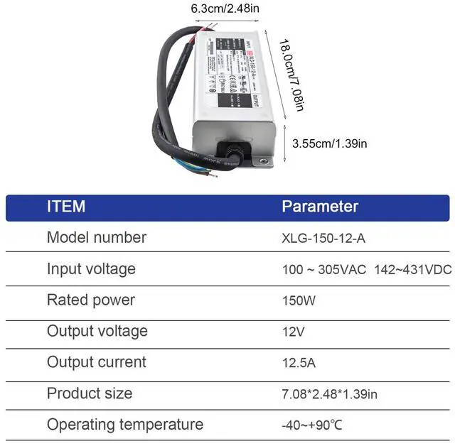 Reliable 12V Power: UL listed 12V 12.5A 150W constant voltage LED driver with IP67 waterproof rating, suitable for demanding outdoor and industrial lighting applications.