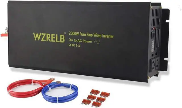 WZRELB 2000W 12V DC to 120V AC pure sine wave inverter generator, as good as Grid power, 2000W continuous power, 4000W peak power, with LED displays for DC AC voltages. Dual us outlets.