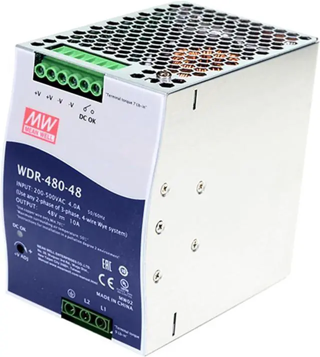 Featuring a wide input voltage range of 180-550VAC and built-in active power factor correction (PFC), the WDR-481 series is suitable for use in regions with unstable power grids and ensures clean and efficient power delivery.