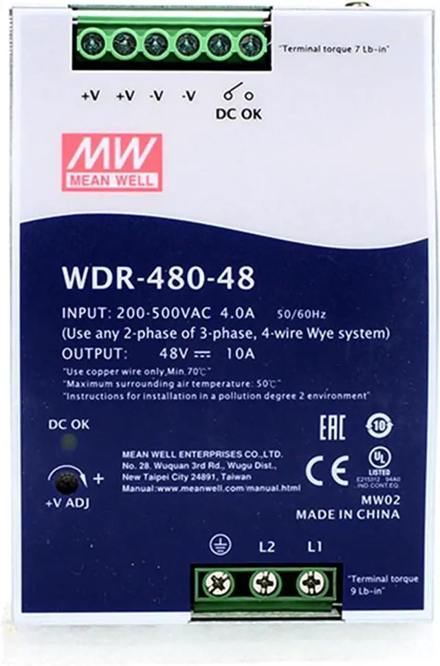 The WDR-481 series is perfect for a wide range of industrial applications, including automation systems, robotics, machine tools, and more. Its robust design and high power output make it suitable for demanding industrial environments.