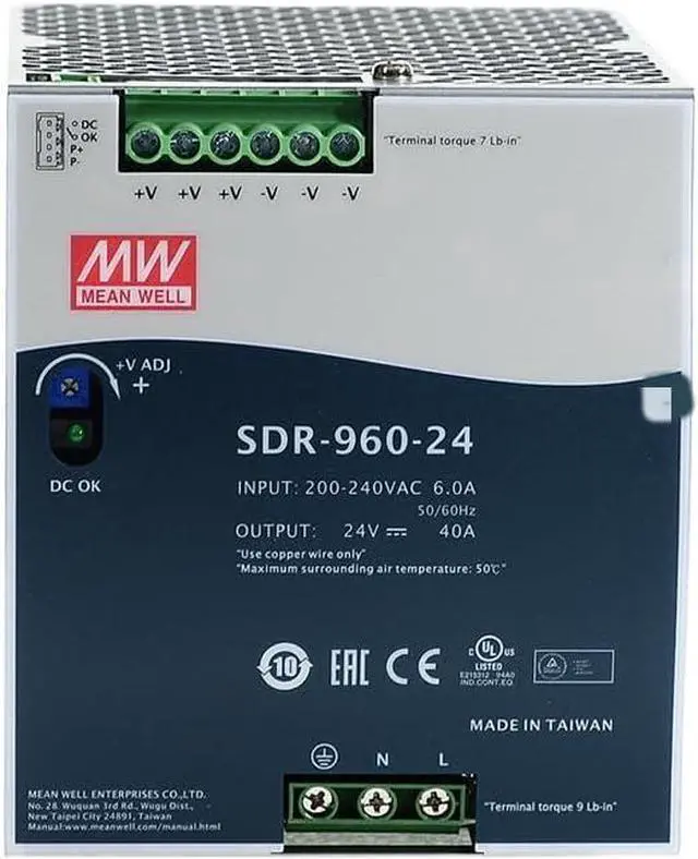 Power driver is certified for industrial control equipment and can be mounted on TS-35/7.5 or 15 rails. With PFC, it can 150% peak load capacity.