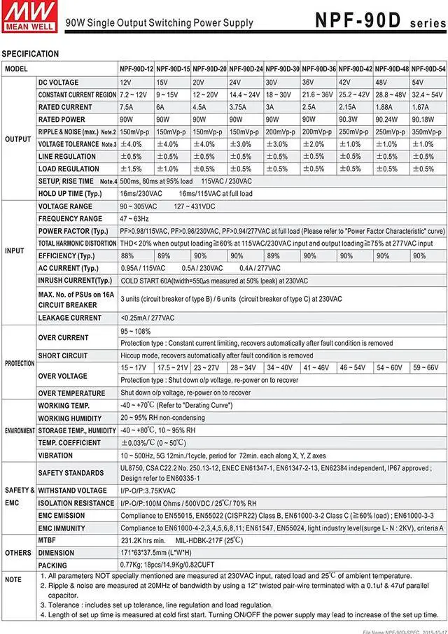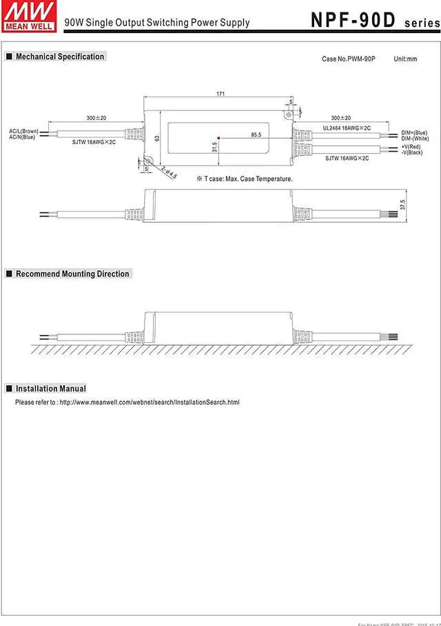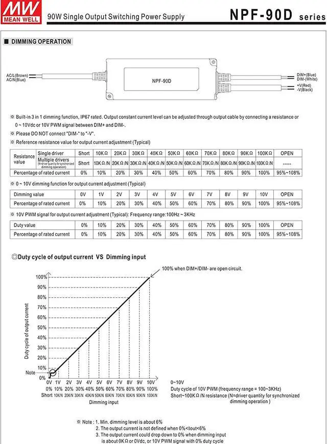MEAN WELL NPF-90D-36 90 W Single Output 2.5 A 36 Vdc Output Max Dimmable Switching Power Supply - 1 item(s)