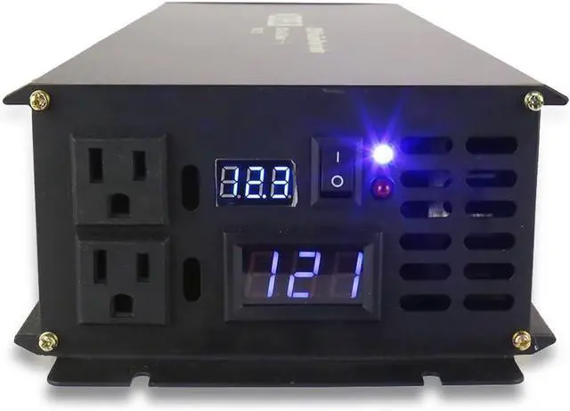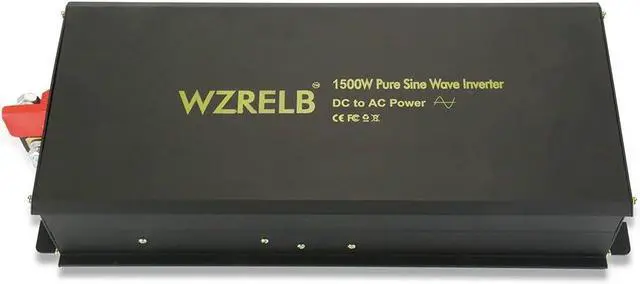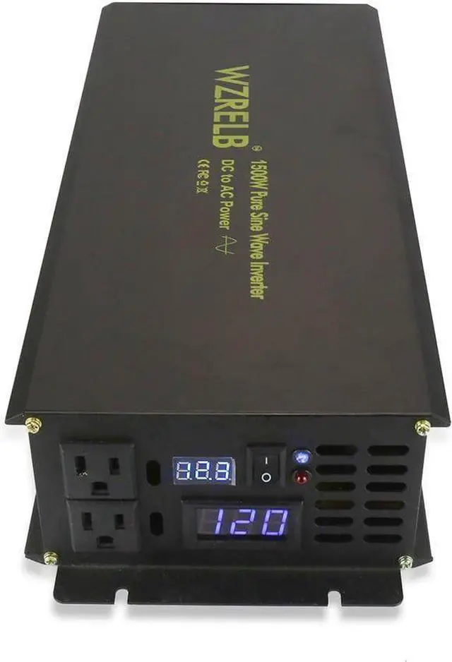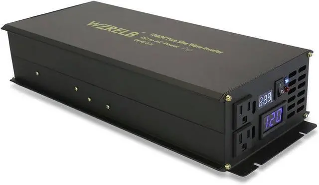 WZRELB 1500W 12V DC to 120V AC pure sine wave inverter generator, as good as Grid power, 1500W continuous power, 3000W peak power, with LED displays for DC AC voltages. Dual us outlets.