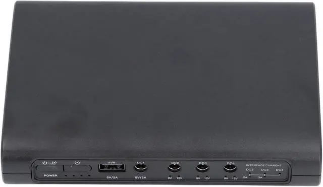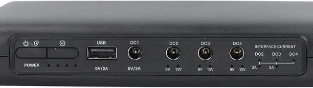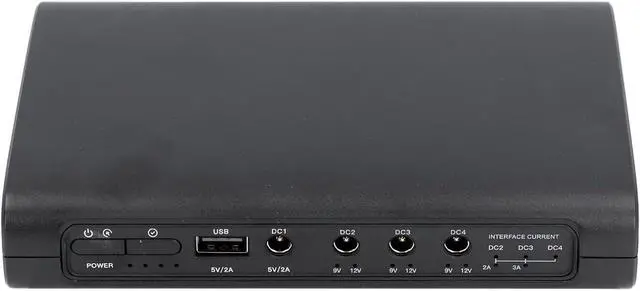 Multiple Output Options: The uninterruptible power supply features versatile output options including USB 5V 2A, DC 5V 2A, 9V 3A (Maximum), and 12V 3A (Maximum), supporting any current below 3A. It also supports DC2, DC3, DC4 power sharing (manual activation required).