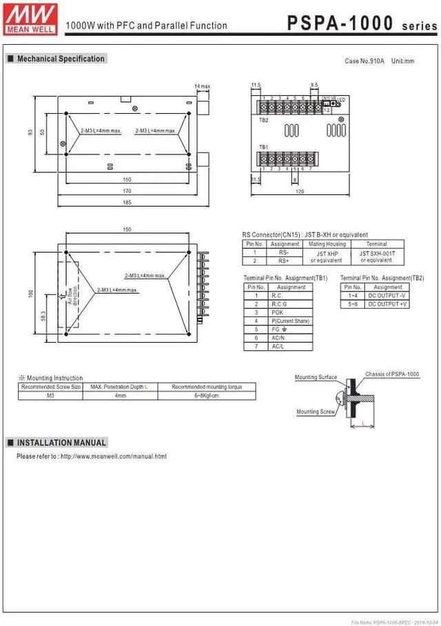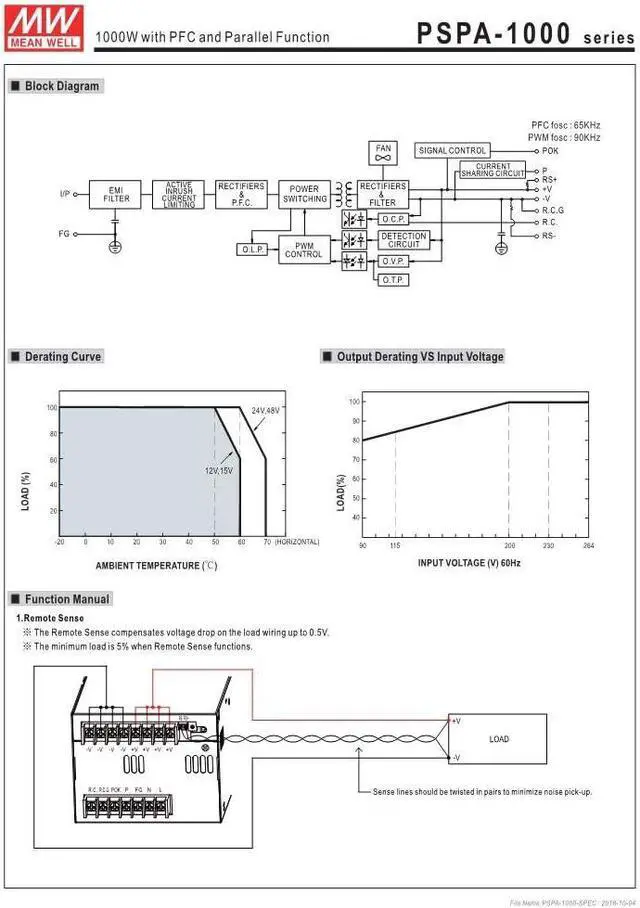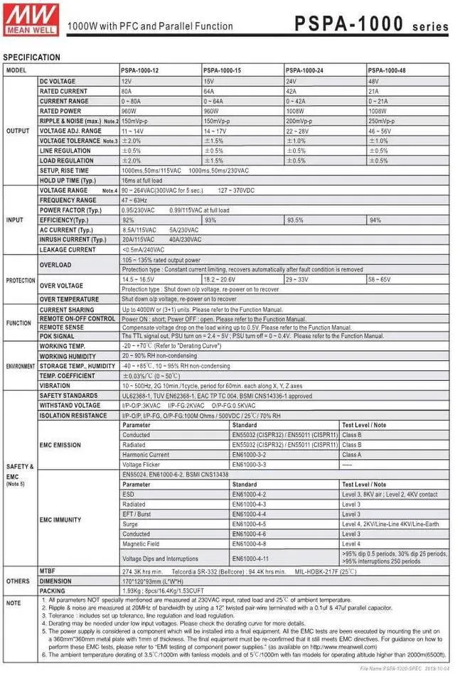 Universal AC input / Full range Protections: Short circuit / Overload / Over voltage / Over temperature Forced air cooling by built-in DC fan Built-in remote ON-OFF control 5 years warranty