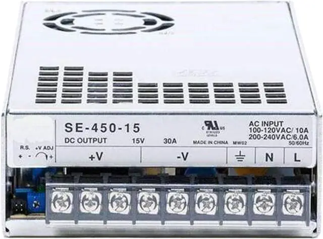 Reliable Performance with Forced-Air Cooling: This 450W enclosed power supply utilizes a built-in DC fan for effective heat dissipation, ensuring reliable performance in demanding industrial environments.