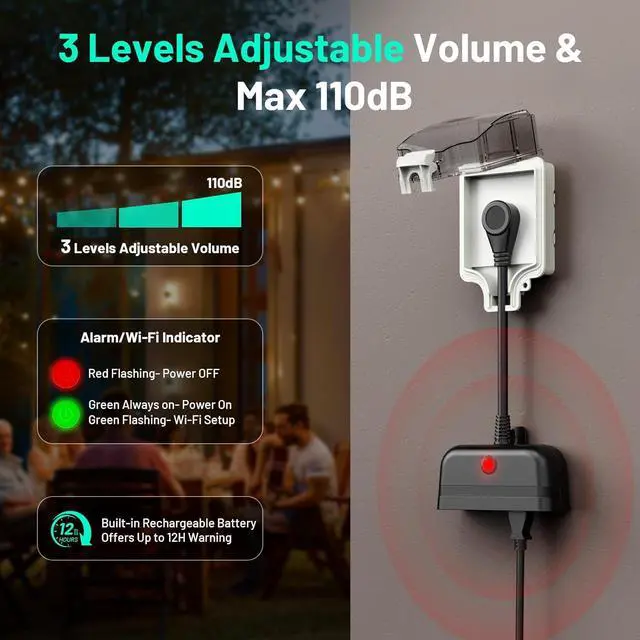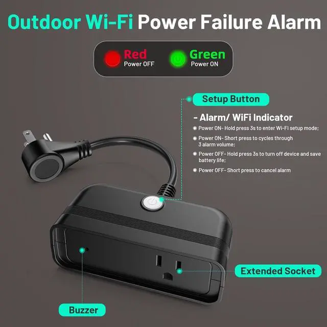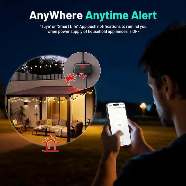 Outdoor Applications: Upgraded weatherproof design allow the device can stand by outdoor to monitor the power supply of auto drip irrigation, bird bath pool, courtyard lighting, campomg picnicking and pond pump etc, once power outage and push notifications immediately, let you more be free