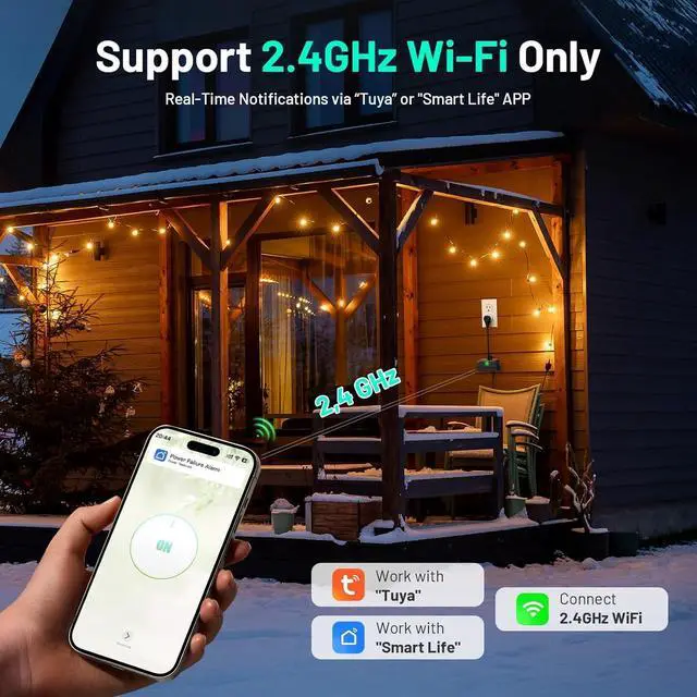 2.4GHz WiFi & APP Notifications: Device support 2.4GHz Wi-Fi signal only (Not support 5G WiFi)and connect with "Smart Life" or "Tuya" APP to get timely notifications whether indoor or outdoor, never miss any reminder even going out
