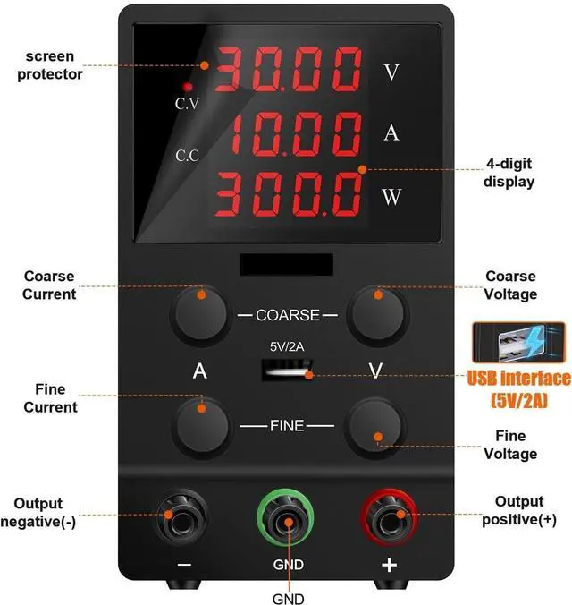 The power supply uses advanced technology PWM, voltage, current can be continuously adjustable from 0 - 30V/60V Rating obtain