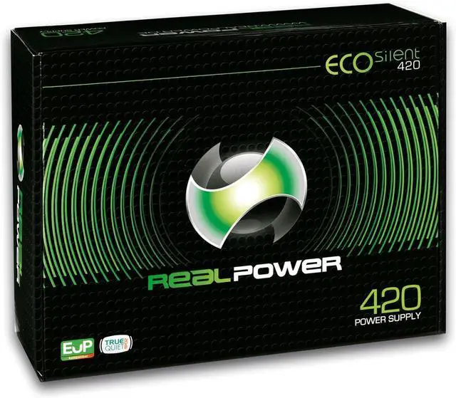 RealPower RP420 ECO Silent The RealPower RP-420 ECO Silent power supply has a power of 420 W, is equipped with a 120 mm fan and is ATX 2.2 compatible.