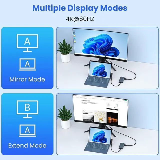 4K@60HZ HDMI Display Surface DockOur Surface Dock hub HDMI display support Extend or Mirror Mode. Use Surface dock and enjoy 4K stunning visuals and crystal-clear display quality that will elevate your work and entertainment experience. 4K HDMI support resolutions up to 3840 x 2160@60Hz. Switch effortlessly between mirror/extend/individual display modes - ideal for video editors, and hybrid workers needing expanded screen real estate.