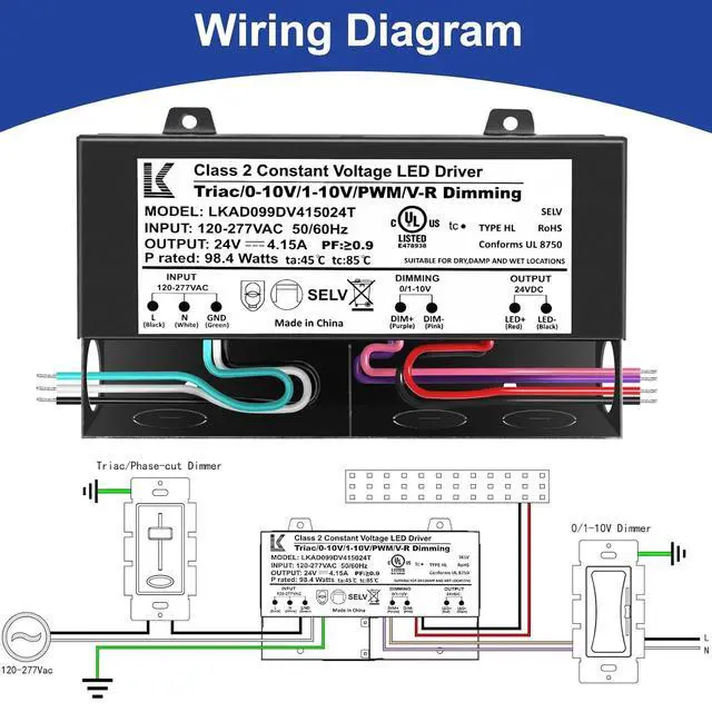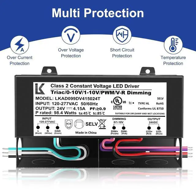 5-IN-1 Dimming Function: The 24V LED driver supports 5-in-1 dimming: Triac/0-10V/1-10V/ELV/MLV/PWM/V-R, and is compatible with most AC wall dimmers, including Lutron and Leviton. Enables smooth, flicker-free dimming from 100% to 0%