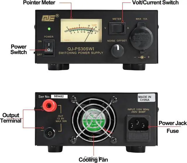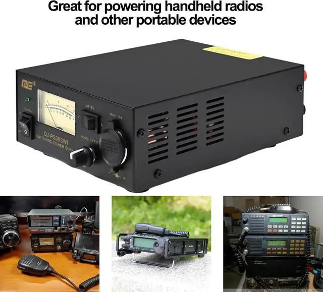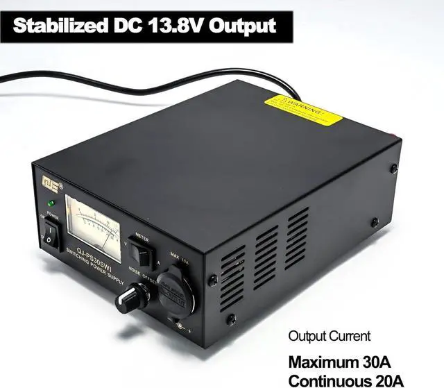 30A bench power supply converts AC 110V input to constant DC 13.8V output with a maximum current of 30A and continuous output of 20A, ideal for CB VHF UHF HAM Amateur Radio