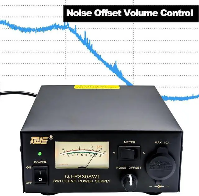 Ham radio switching power supply features an adjustable noise offset volume control to eliminate pulse noise from the switching power supply, tailored to frequency and mode variations