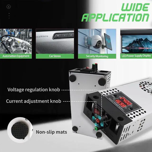 Wide application:Adjustable DC 0-30V 0-16Amp 500W power supply for industrial automation equipment, LED strip, radio, amplifier, radios, LED drive, CCTV camera system, 3D printer, car stereos, water pump and more 30V device.