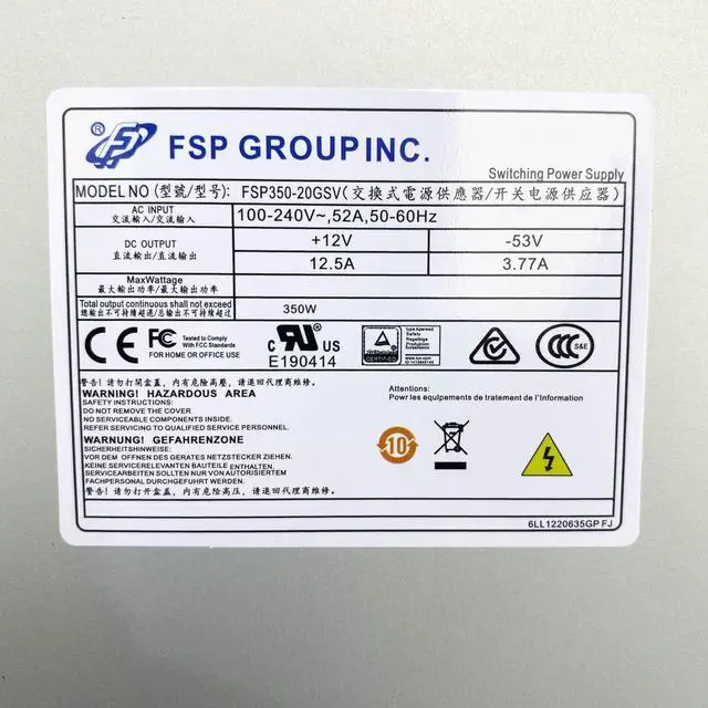 Compatible Model: For DS-7916N, DS-7932N AC Input: 100-240V ~/52A, 50-60Hz DC Output: +12V12.5A, -53V 3.77A Max. Power: 350W You will receive: 1x Power Supply