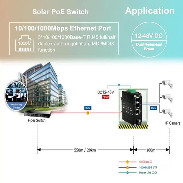, 12~48VDC wide range of power input, with power boost function. Up to 90W PoE budget (24VDC).