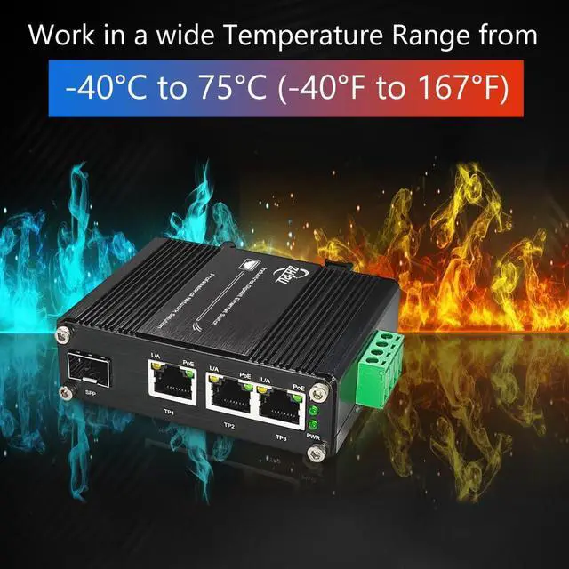 IP40 Aluminum CaseEnvironmentally hardened -40°C to 75°C (-40°F to 167°F) operating temperatureSupports DIN-Rail & Wall-mount installation.