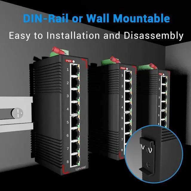 8 Port Industrial unmanaged Switch8× 10/100/1000Mbps ports,16Gbps switching capacity, support automatic detection, full/half duplex MDI/MDI-X adaptive. Please Note: equipped with one UL AC power supply adapter and one power cable, no need to buy it separately.