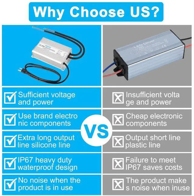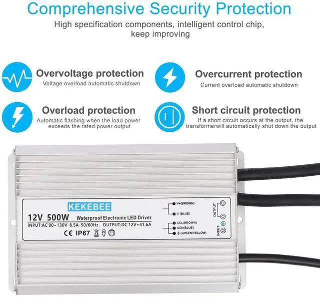 Ultra-high power: strong power beyond imagination. This waterproof LED driver has ultra-high output power. Our team invested a lot of time and energy in design and development. After a long period of repeated testing and use, we ensure the stability and durability of the product. Every detail shows its quality. Ultra-high power means you don't need to worry about the transformer being underpowered, it will definitely exceed your expectations