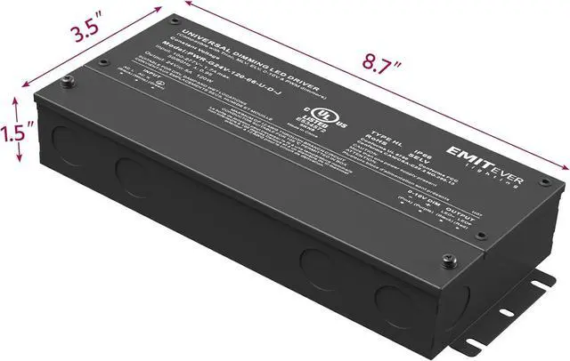 SPECIFICATIONS: cUL us Listed,Class P, Type HL, FCC compliant, damp location rated. Free air convection cooling within low profile compact aluminum housing (only 1.5-inch tall). Mounting foot at both ends allows for screw down upon flat surface for complete installation.