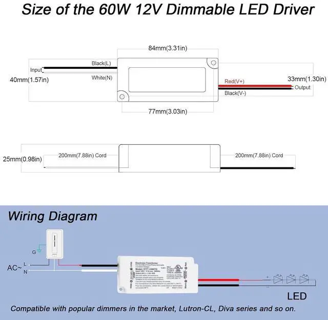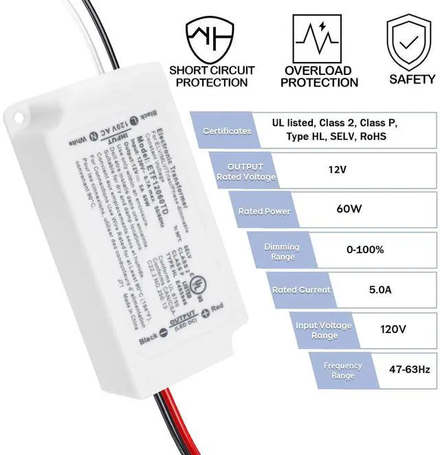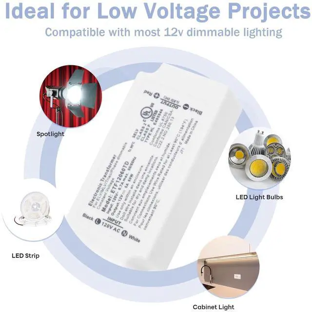 Safety: Our 60W 12V dimming LED driver have short-circuit, over-load protection, ensuring the safety of both the electronic transformer and your project.
