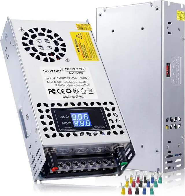 Adjustable Voltage & CurrentThe 48 volt power supply provides adjustable output voltage ranging from 0-48V(max), with adjustable Amp output range 0-12.5Amax. It is suitable for devices with power requirements of 2A,3A, 5A,10A,12A,and12.5A. Please ensure that you use devices below 12.5A with this power supply. Max output 600W; The output voltage depends on the requirements of the connected devices, providing different power for multiple devices (peak power not equal to maximum load power).