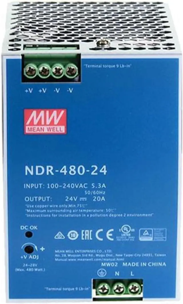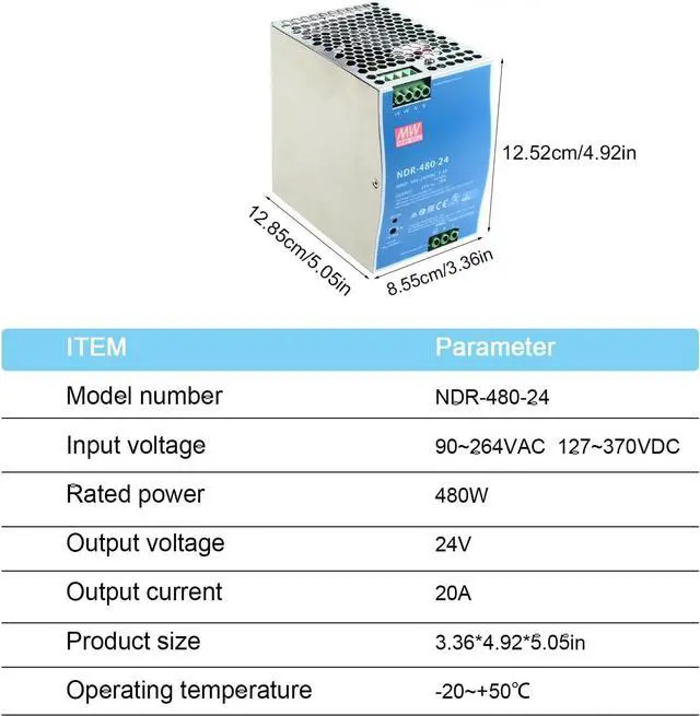 High Reliability: Engineered with high-quality components, this power supply delivers a stable 24V DC output at 20A, ensuring long-lasting performance and reliability for your critical applications.