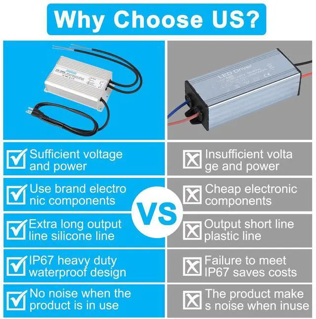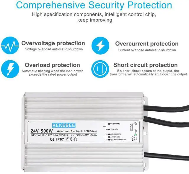 Ultra-high power: strong power beyond imagination. This waterproof LED driver has ultra-high output power. Our team invested a lot of time and energy in design and development. After a long period of repeated testing and use, we ensure the stability and durability of the product. Every detail shows its quality. Ultra-high power means you don't need to worry about the transformer being underpowered, it will definitely exceed your expectations