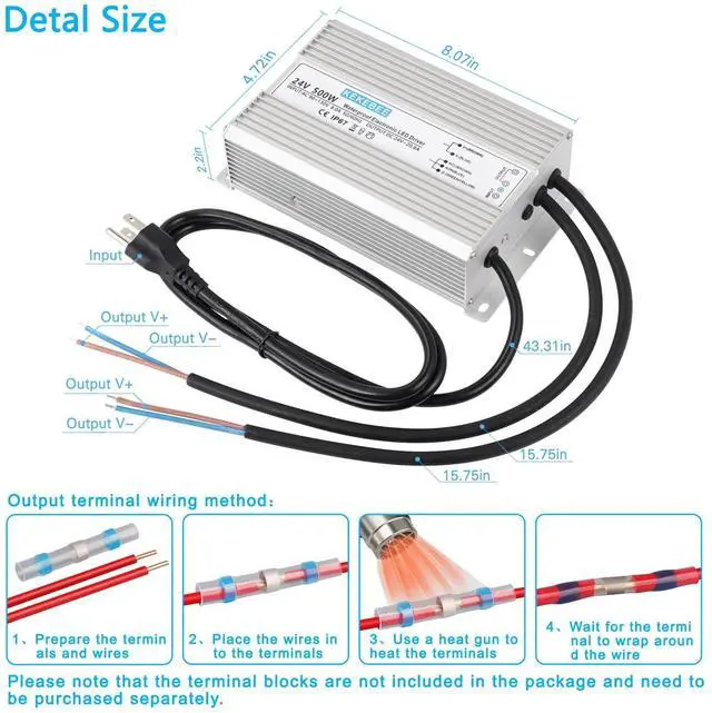Product specifications: Waterproof LED driver. The transformer has sufficient power and high efficiency. Our team has carried out a new upgraded design, using high-quality electronic components to ensure the stability and durability of the product. And completely solved the noise problem during use. Stable output ensures that your product runs perfectly. Note that the output voltage of this driver is a fixed output, the output voltage cannot be adjusted, and there is no dimming function. Please pay attention when purchasing