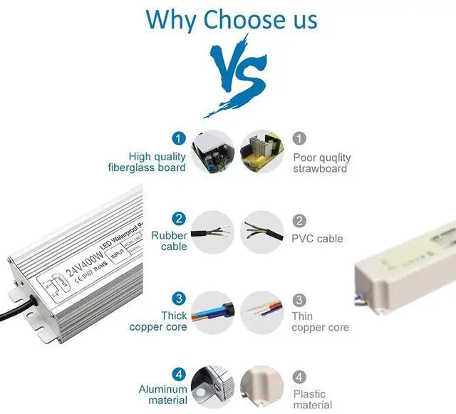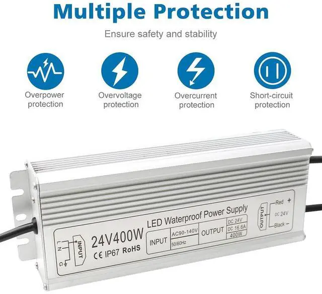 Converts 110V AC to 24V DC, 24v dc led driver widely use for LED strip lights and other 24V DC products(400W). IP67 waterproof power supply ensures reliable, safe power, maintaining smooth operation in challenging conditions