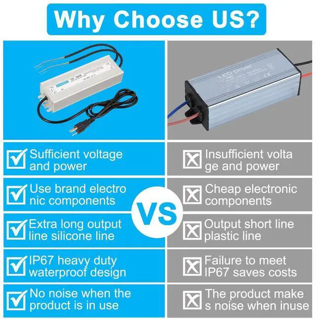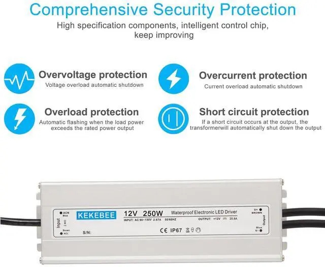 Ultra-high power: strong power beyond imagination. This waterproof LED driver has ultra-high output power. Our team invested a lot of time and energy in design and development. After a long period of repeated testing and use, we ensure the stability and durability of the product. Every detail shows its quality. Ultra-high power means you don't need to worry about the transformer being underpowered, it will definitely exceed your expectations