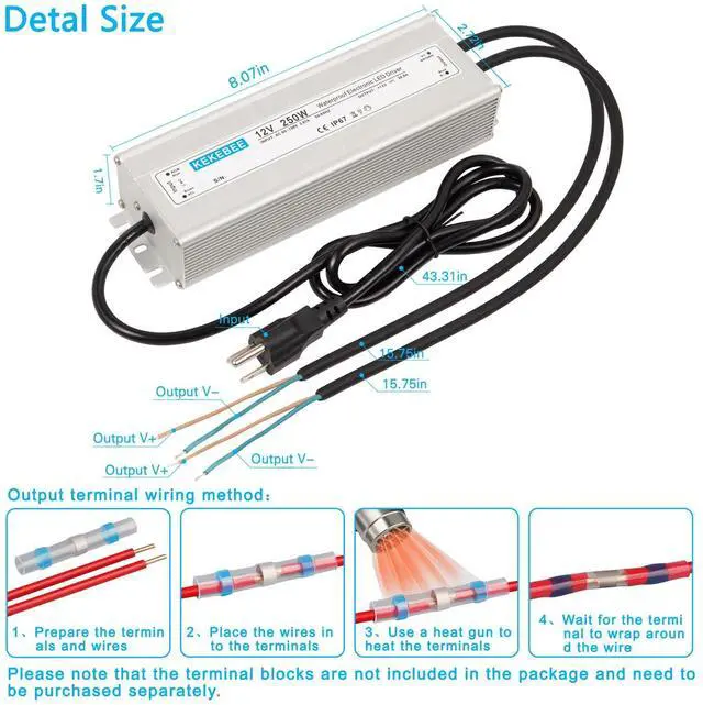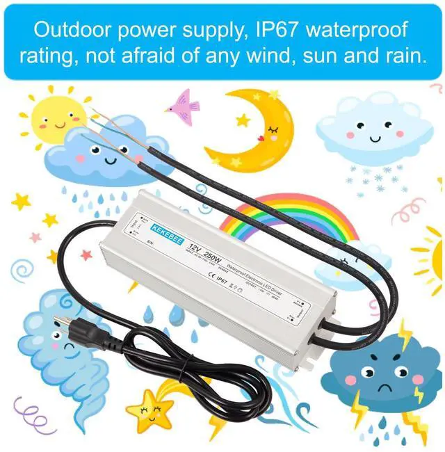 Product specifications: Waterproof LED driver. The transformer has sufficient power and high efficiency. Our team has carried out a new upgraded design, using high-quality electronic components to ensure the stability and durability of the product. And completely solved the noise problem during use. Stable output ensures that your product runs perfectly. Note that the output voltage of this driver is a fixed output, the output voltage cannot be adjusted, and there is no dimming function. Please pay attention when purchasing