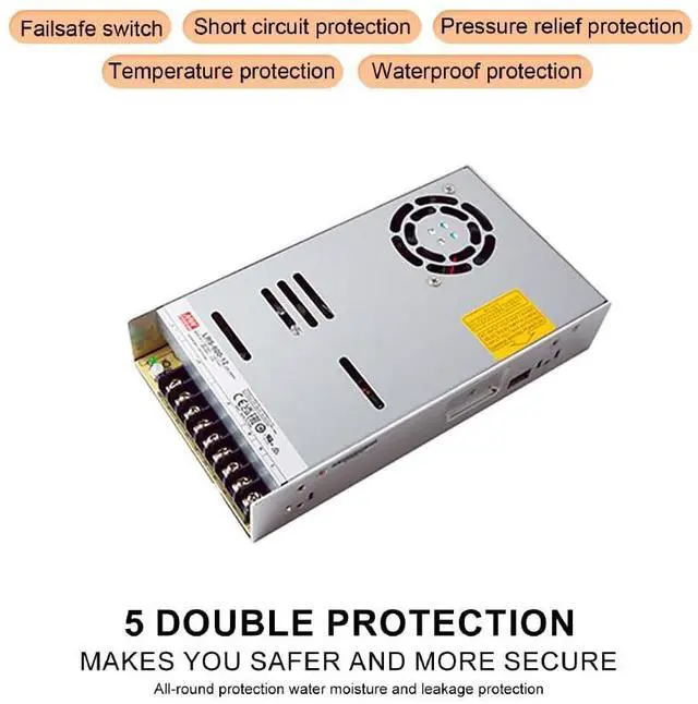 Wide Input Voltage Range and Harsh Environment Adaptability: Supports input voltages from 90-264VAC, capable of withstanding 300VAC surge for 5 seconds, proving its durability under challenging conditions.